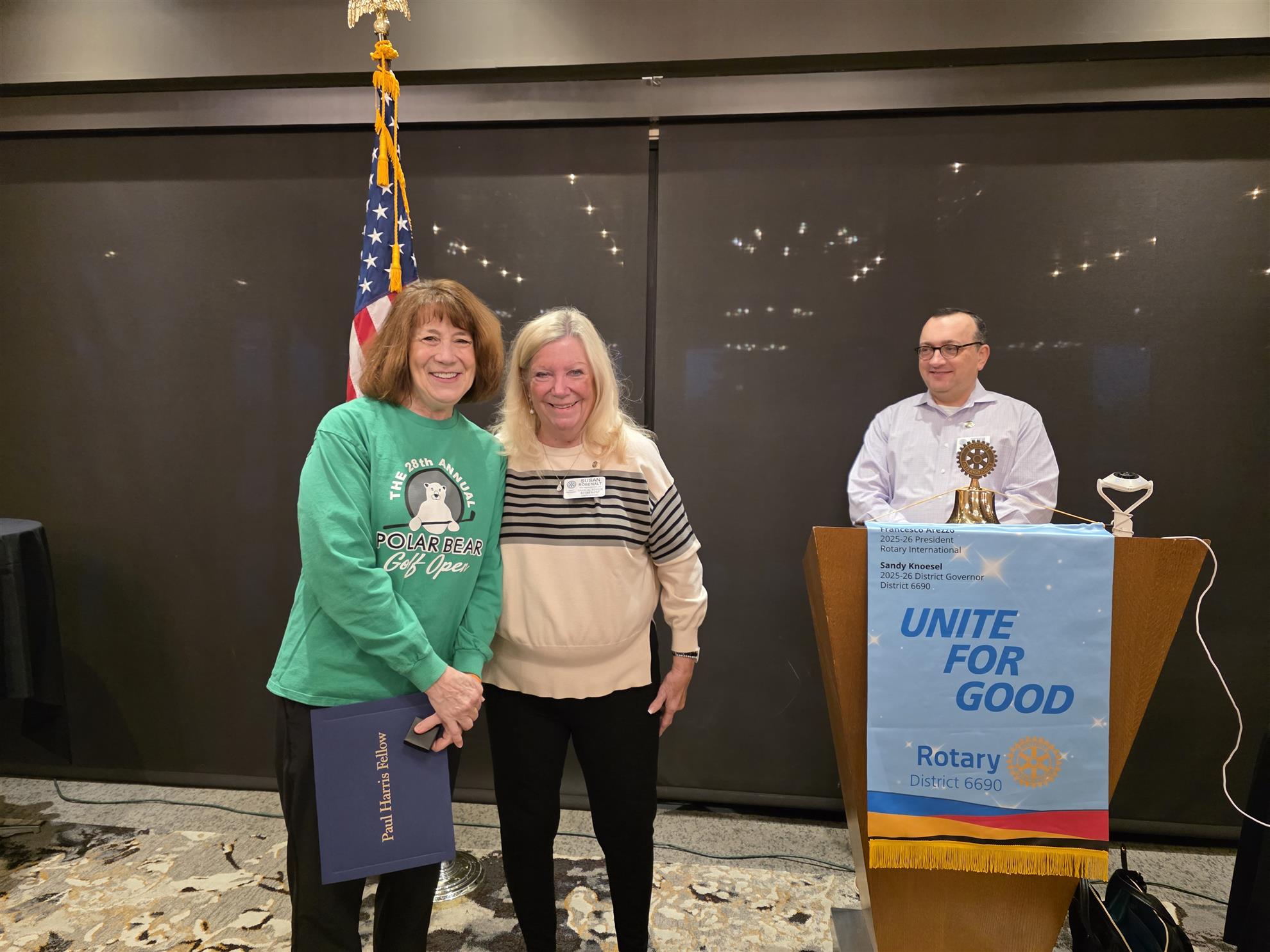 Susan Robenalt presented Susan West with a Paul Harris Award, explaining its significance and how club members can contribute to this honor.